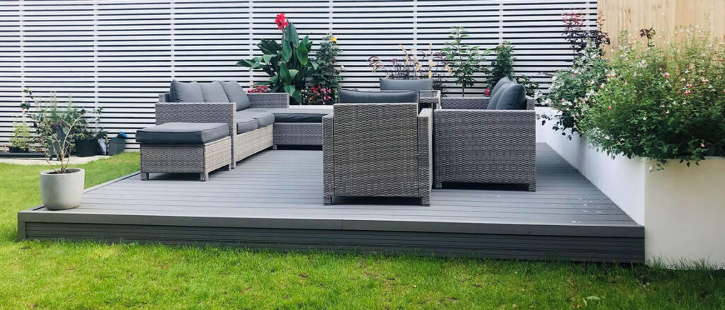 Sobre un deck podemos añadir elementos como pérgolas, celosías, bancos, jardineras…
